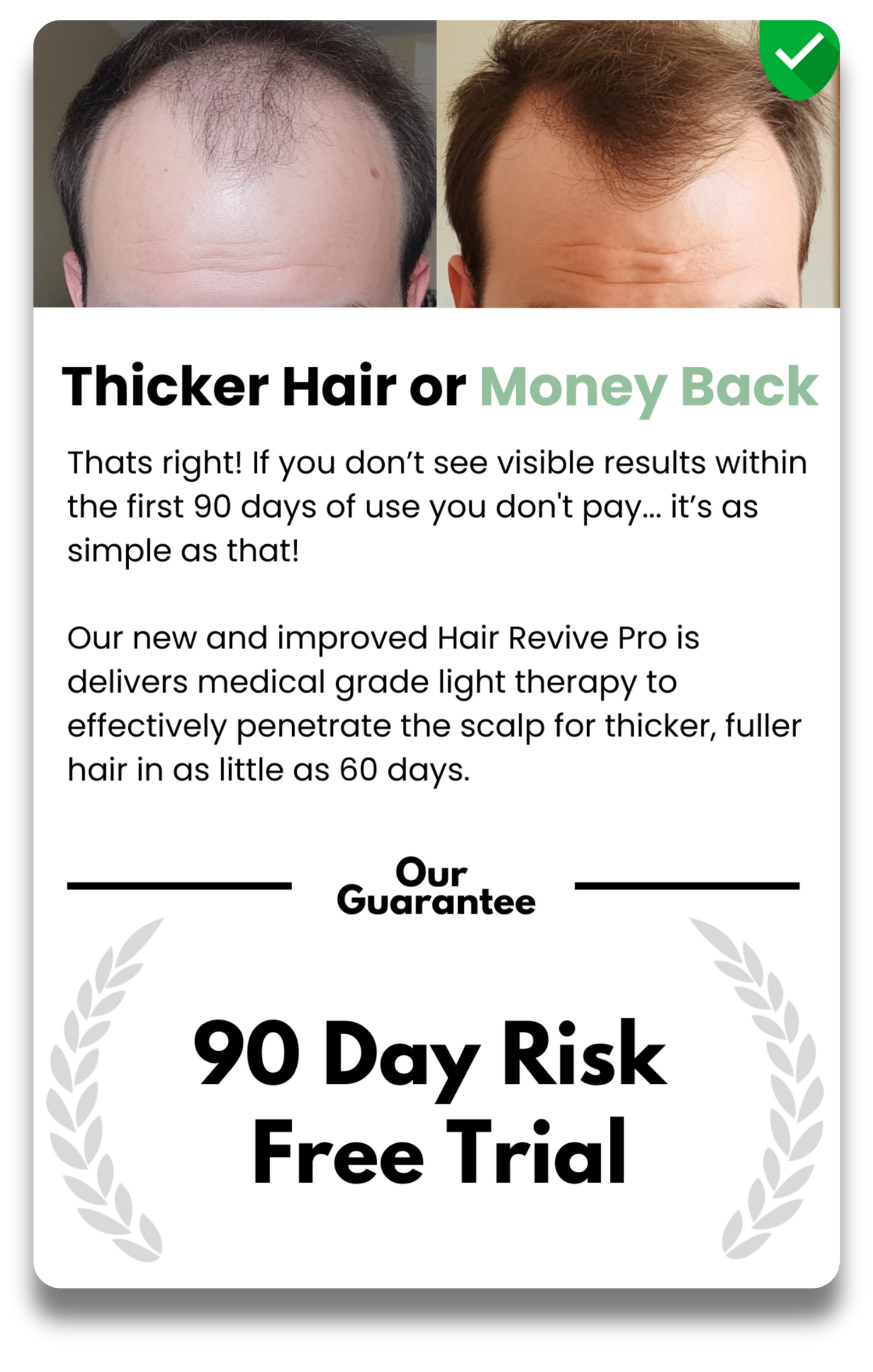 Hair Revive Pro includes a 90-day money-back guarantee because we're extremely confident you will experience the benefits first hand.