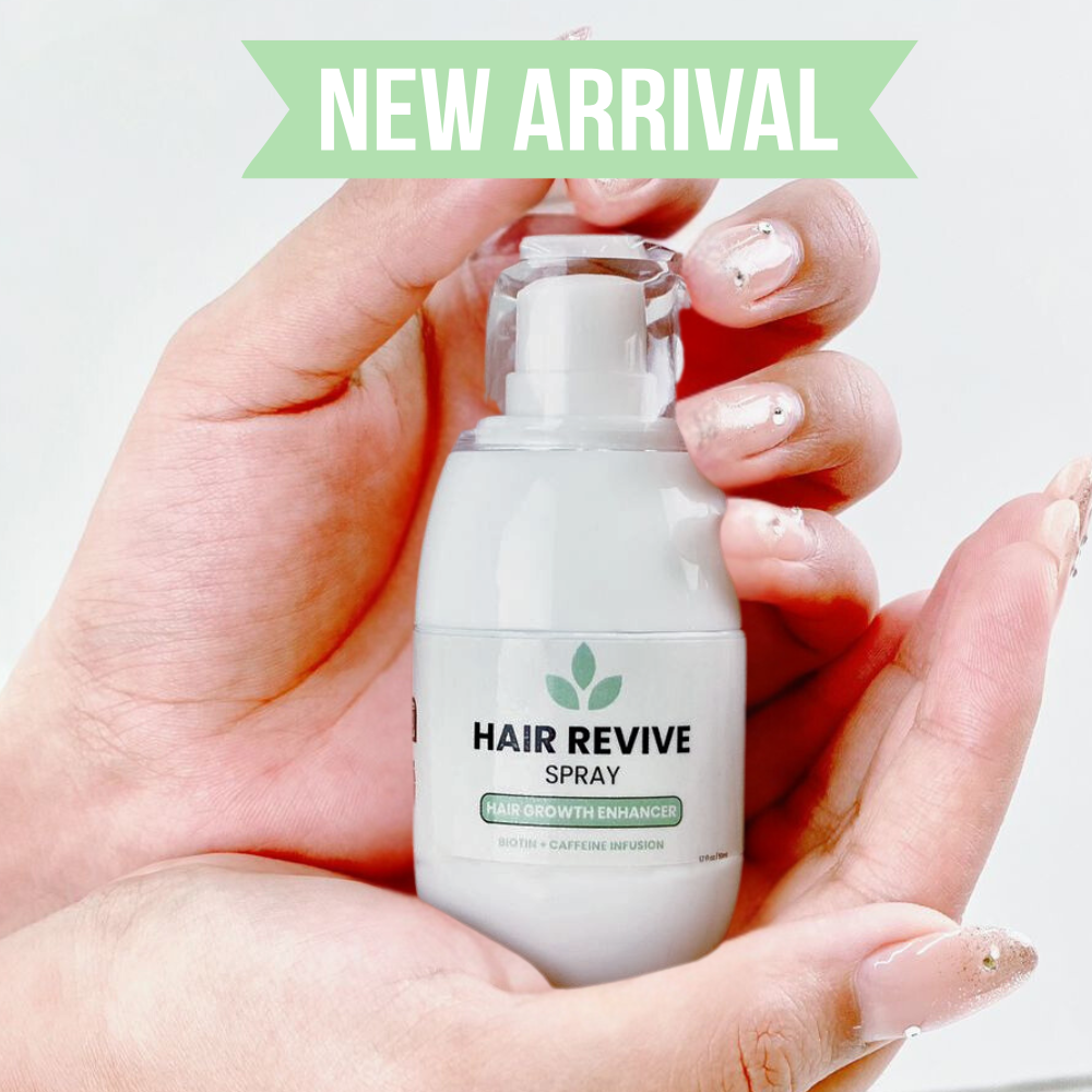 Notre tout nouveau spray Hair Revive est infusé de biotine et de caféine ainsi que d'une gamme d' éléments essentiels pour vous aider dans votre parcours de croissance des cheveux.