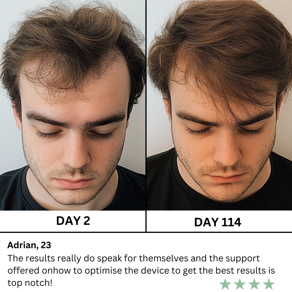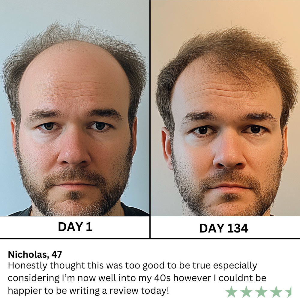 "I thought my hairline was a lost cause, but after 2-3 months, I'm seeing real progress. Even my barber noticed!"