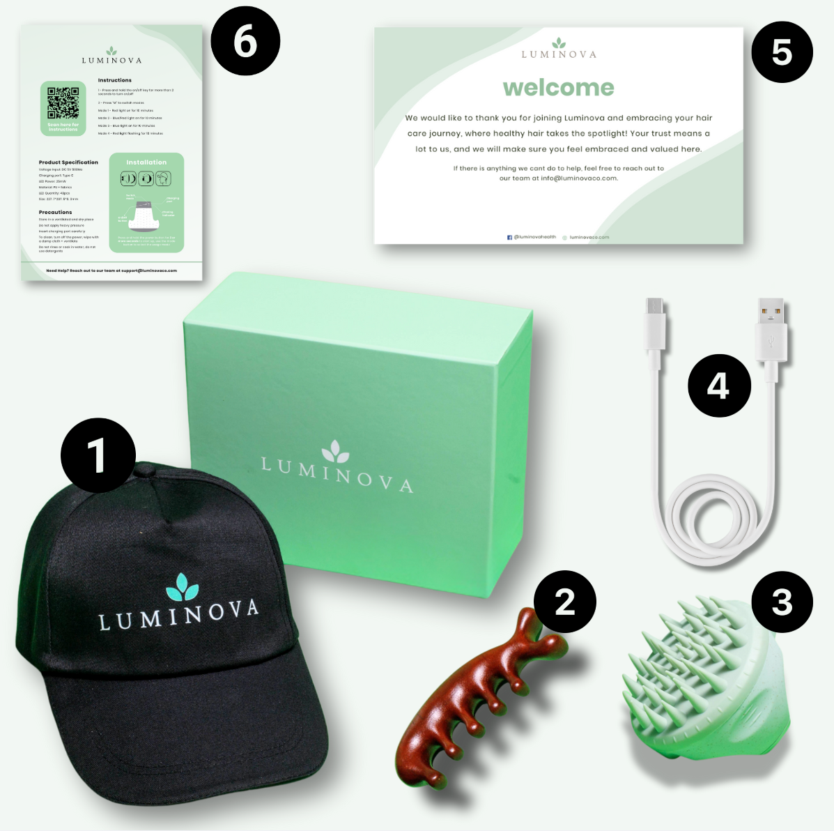 Lorsque vous commandez, vous recevrez tout ce dont vous avez besoin pour démarrer votre parcours de repousse des cheveux :