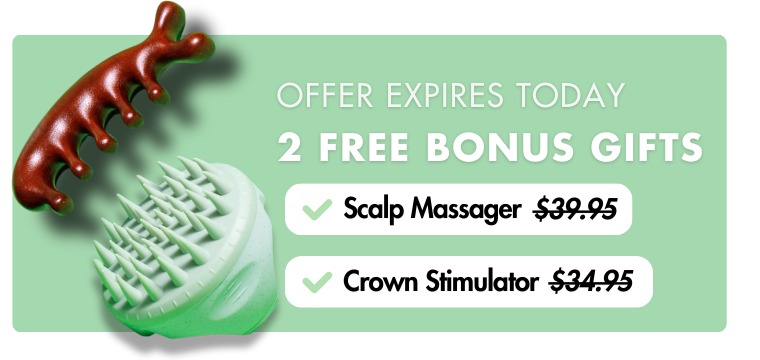 - Stimulateur Zen Crown (Bonus GRATUIT !) – Un masseur de cuir chevelu conçu pour améliorer la circulation et augmenter l’efficacité.